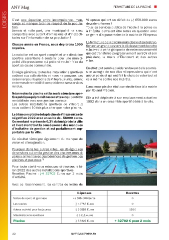 LOISIRS C’est une équation entre incompétence, men- Villepreux qui ont un déficit de (-) 659.000 euros