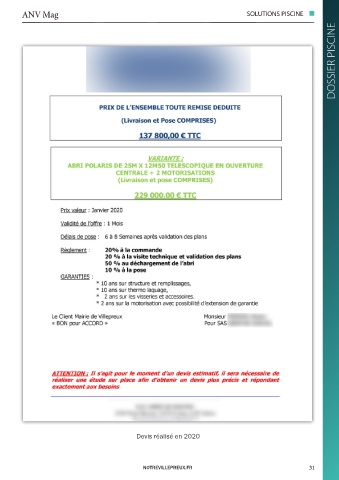 ANV Mag SOLUTIONS PISCINE DOSSIER PISCINE Devis réalisé en 2020 NOTREVILLEPREUX.FR 31