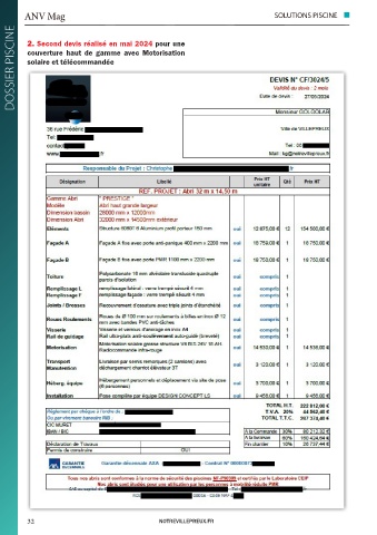 ANV Mag SOLUTIONS PISCINE DOSSIER PISCINE 2. Second devis réalisé en mai 2024 pour une couverture haut de gamme avec Motorisation solaire et télécommandée 32 NOTREVILLEPREUX.FR