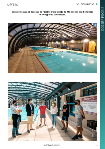 ANV Mag SOLUTIONS PISCINE DOSSIER PISCINE Vous retrouvez ci-dessous la Piscine municipale de Monticello qui bénéficie de ce type de couverture. NOTREVILLEPREUX.FR 33