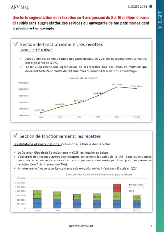 ANV Mag BUDGET 2024 Une forte augmentation de la taxation en 4 ans passant de 8 à 10 millions d’euros dilapidés sans augmentation des services ou sauvegarde de nos patrimoines dont BUDGET la piscine est un exemple. NOTREVILLEPREUX.FR 5