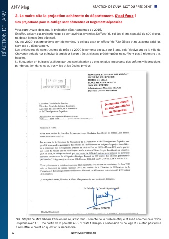 RÉACTION DE L'ANV Ces projections pour le collège sont démenties et largement dépassées